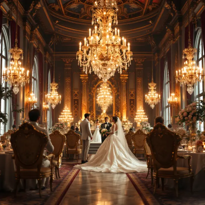 Une atmosphère de château, chandeliers majestueux, décor grandiose et service haut de gamme pour une journée digne de la royauté française.